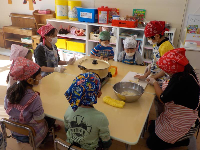 もみじ組が畑で収穫した芋と人参を使って(カレー粉とか隠し味とか)お買い物もして「カレーをつくろう!」と計画を立ててくれました。包丁の練習もしましたよ。
