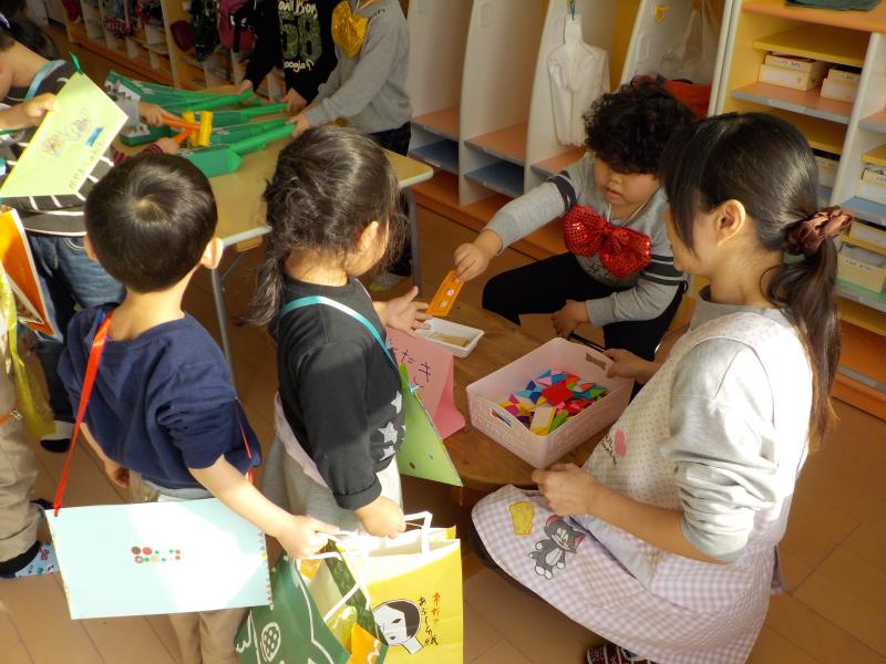 ぽぷら組はスィーツやさん、いちょう組はおしゃれやさん、そしてもみじ組はわくわくもみじランドを開店しま~す。